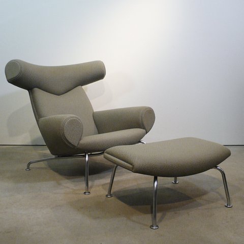 EJ-100 "Ox Chair" and Footstool by Hans Wegner for Erik Jørgensen, Denmark 1960