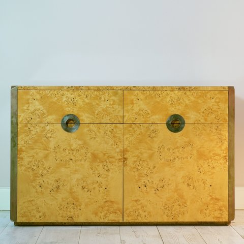 2-Door Burl Wood Sideboard by Willy Rizzo for Sabot, Italy 1972