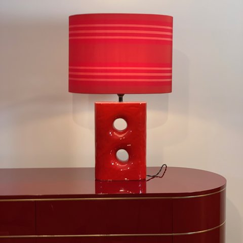 Pair of Red Glass Table Lamps by Peill & Putzler, Germany 1970s