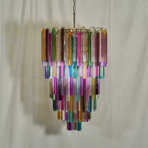 Multi-Coloured Triedri Murano Glass Chandelier, Italy 1980s