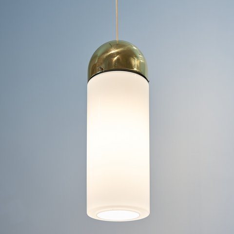 XL Glass and Brass Pendant Light by Doria, Germany 1970s