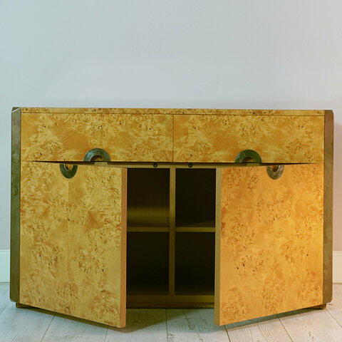 2-Door Burl Wood Sideboard by Willy Rizzo for Sabot, Italy 1972