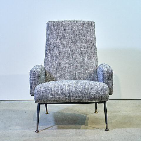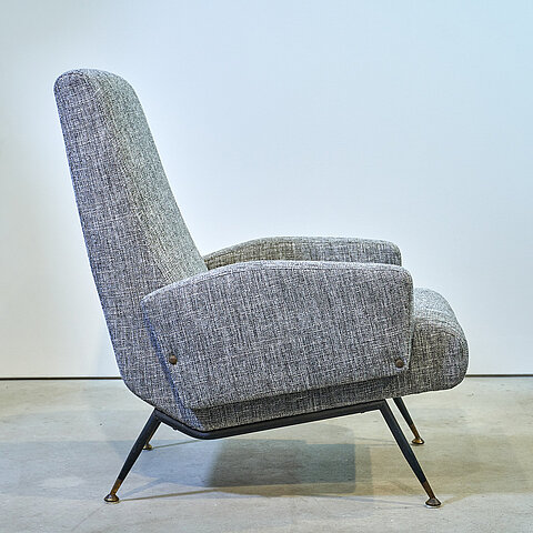 Beautifully shaped armchair in the manner of Gio Ponti or Nico Zoncada with metal feet, Italy 50s / 60s.