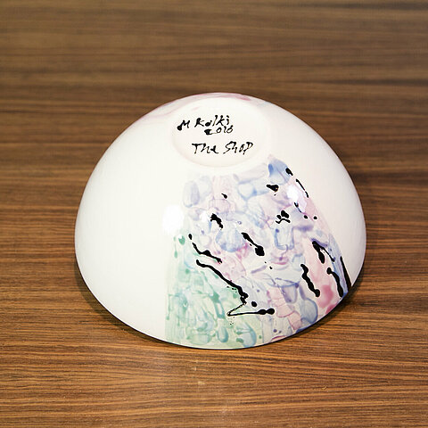 An exciting Ceramic Collection of one-of-a-kind bowls: The collaboration with artists to produce playful and beautifully painted bowls are the most adorable everyday objects to keep or to give to others. This one-of-a-kind piece is by German artist Michael Kalki.