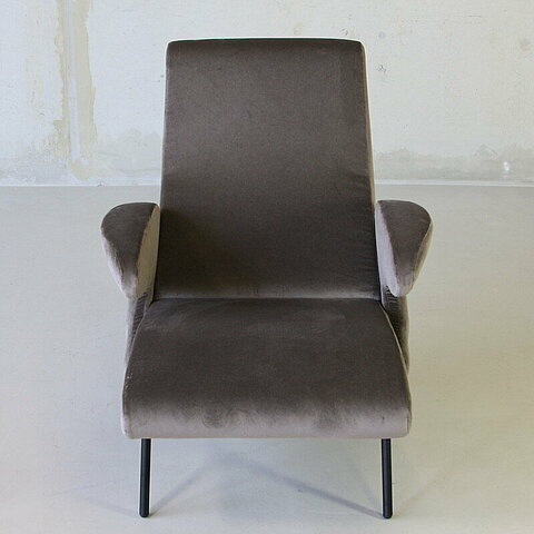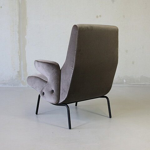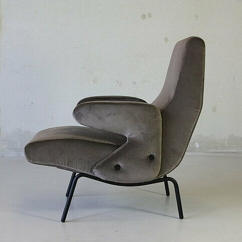 Armchair designed by Erberto Carboni for Arflex who first produced the design in the Fifties. "Delfino" is an chair with a strong personality: Armrests that look like fins and the body, harmonious and subtle, ressembles a dolphin. This armchair, designed in 1954 by Erberto Carboni, took its name from the graceful sea mammal.