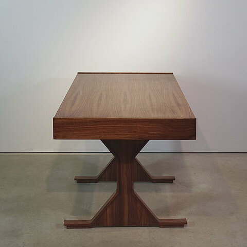 Beautiful free-standing desk designed by Gianfranco Frattini for Bernini. Construction made of solid rosewood and rosewood veneer, the front with two drawers with storage compartments at the front and back.
