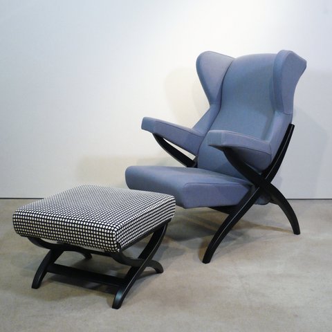 Truly comfortable and stylish "Fiorenza" armchair with a high back rest designed by Franco Albini for Arflex in the early 50s. It comes in various fabric and leather qualities as well as lacquer options for the wooden frame. Please get in touch for enquiries and quotes!