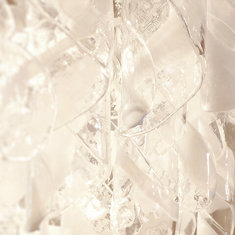 Elegant glass chandelier from the production of Mazzega in Murano, Italy.The hanging, hand-blown glass spiral are typical of Mazzega's chandeliers, many of which are elaborately designed and often stand out for their sculptural quality. The frame appears to have been sprayed grey at a later stage.