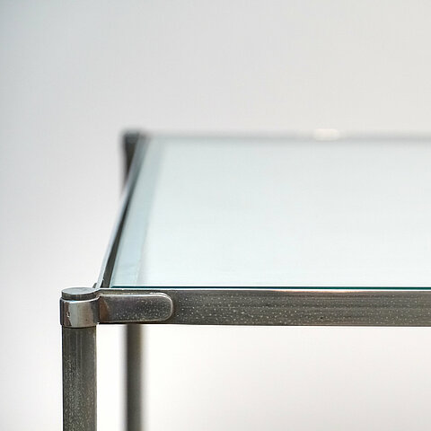 This table’s body is constructed with chromed metal legs and thin glass shelves producing clean lines. This set may be separated as side tables or paired together as a coffee table.