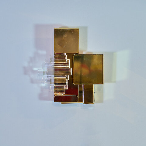 Three wall sconces in metal chrome, brass and glass by Gaetano Sciolari for Italian editor Stilkronen. The model is called "Riflesso" according to the original swing ticket still attached.