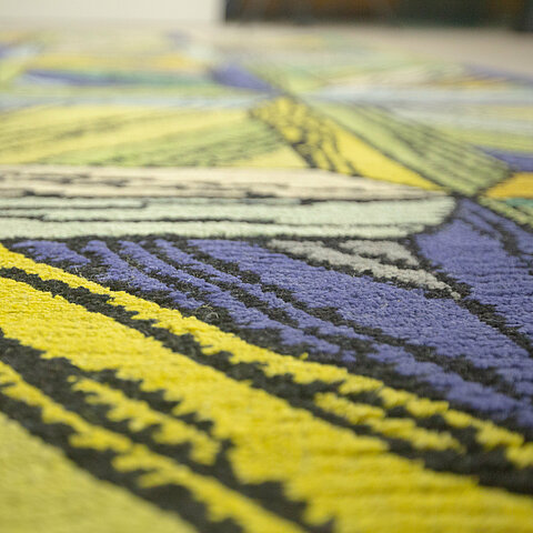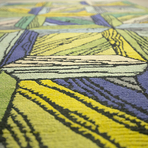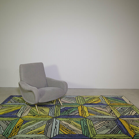 Handmade carpet in wool (60 knots), produced in Katmandu, Nepal. The label is signed in original by the designer.