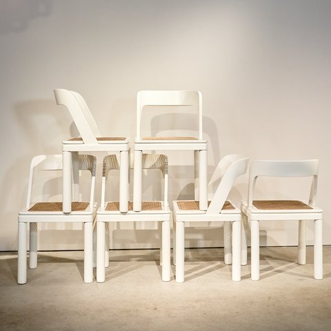 Set of Six Lacquered Oak Wood Chairs in the Manner of W. Rizzo, Italy 1970s
