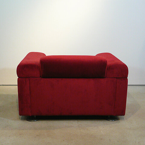 Very rare lounge or armchair of the D120 seating line designed by Valeria Borsani (the daughter of) and Alfredo Bonetti for the Tecno Company reupholstered in rich red moleskin velvet.