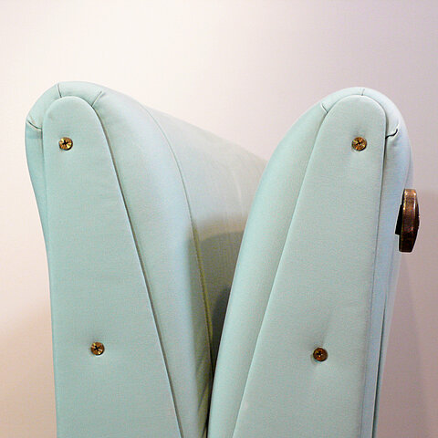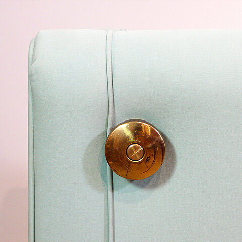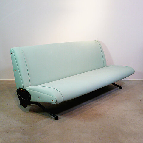 Sleeping sofa designed by Osvaldo Borsani in 1954 and produced by Tecno. The "D70" marked a departure from craft to industrial production. The surface opens up to a total width of 115 cm (45").