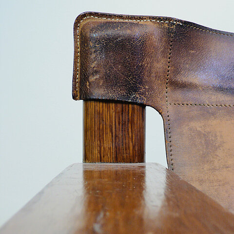 Condition: Good vintage condition with strongly patinated leather. Some loss of varnish.