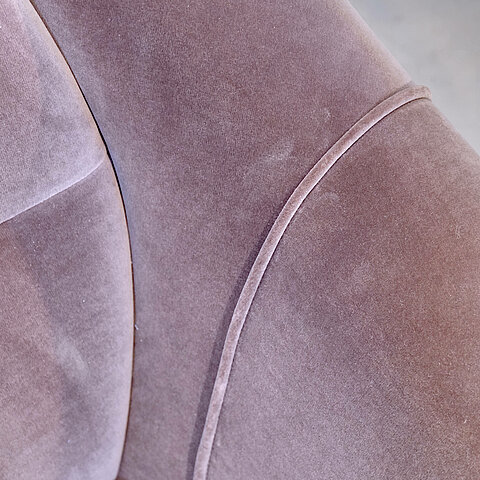 3-seater sofa fully reconditionned and re-upholstered in two shades of Romo velvet and feet are made of lacquered metal and brass detailing. Very elegant and extremely comfortable!