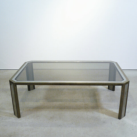Chrome and brass coffee table with smoked glass table top, possibly by Romeo Rega for Metalarte. Wonderful patina.